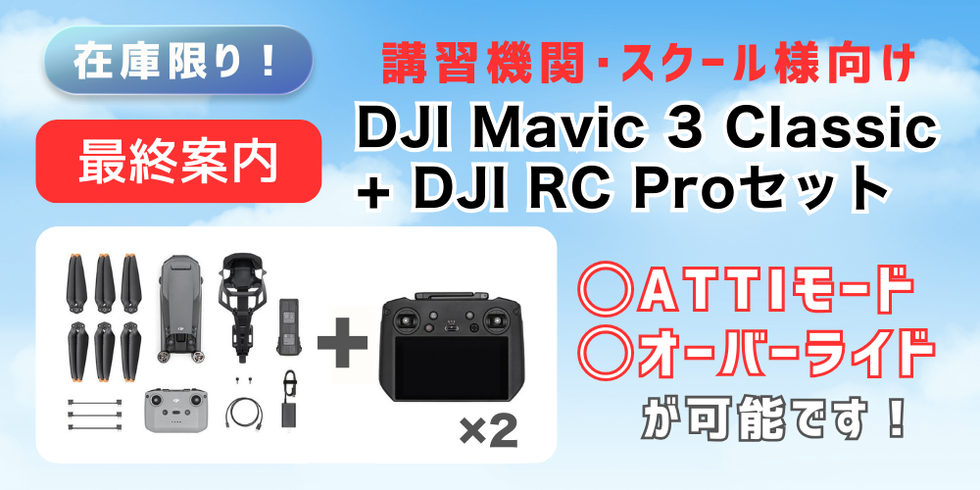 【スクール様向けセット】DJI Mavic 3 Classic(DJI RC-N1付属)+RC Pro2台セット